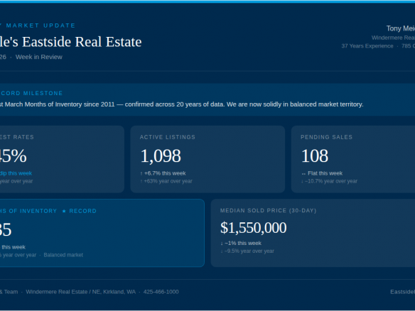 • Pending sales (agreements that have been signed but not yet closed) were up by over last year in nearly every Eastside city.