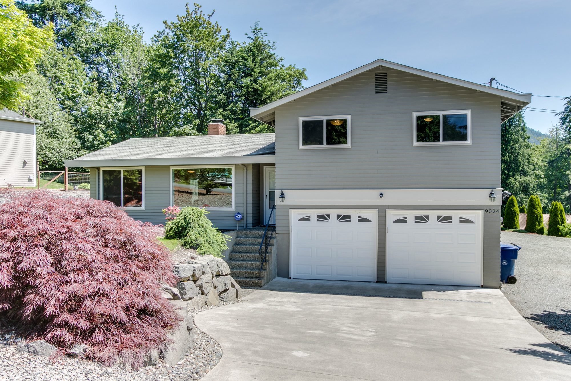 The expansive rear yard includes – Huge, entertainment sized deck, flat lawn for play, two patios, grand staircase, fire pit, all showcased with territorial views. Side yard is leveled and ready for an RV or all your toys. Hot & cold faucet too. Attached 2 car garage with storage options. The area features close access to shopping, restaurants and I405.