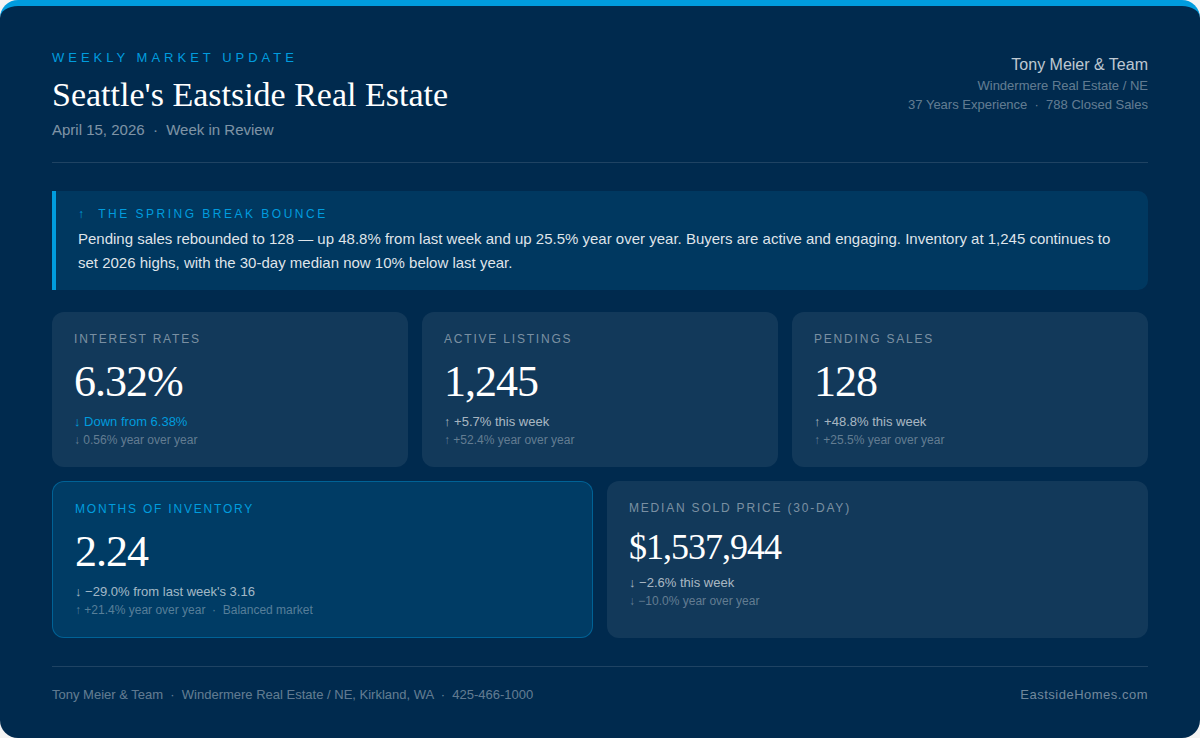 With 52.4% more competition on the market than a year ago, pricing discipline is the single most important decision you will make. Homes priced accurately against today’s comparable sales — not 2025 peaks, and not even the partial recovery readings from January and February 2026 — are still selling well, while overpriced listings are sitting longer and often requiring reductions that erode both value and negotiating position. We have done extensive analysis on exactly what this market shift means for sellers in each Eastside sub-market — if you are considering a move, we would welcome the opportunity to walk you through what the data shows for your specific area and home.