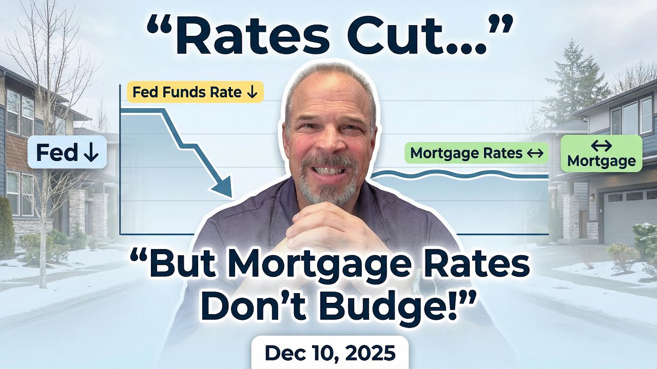 3 Fed Rate Cuts... Mortgage Rates Don't Budge! Seattle's Eastside Real Estate Update • 12-10-25 **Hosted by Tony Meier • Windermere Real Estate • 36 Years Experience** Welcome back to your weekly Eastside housing update. Even with *three* recent Federal Reserve rate cuts, the mortgage market has barely moved — and the gap between policy and mortgage pricing is becoming a defining trend for...
