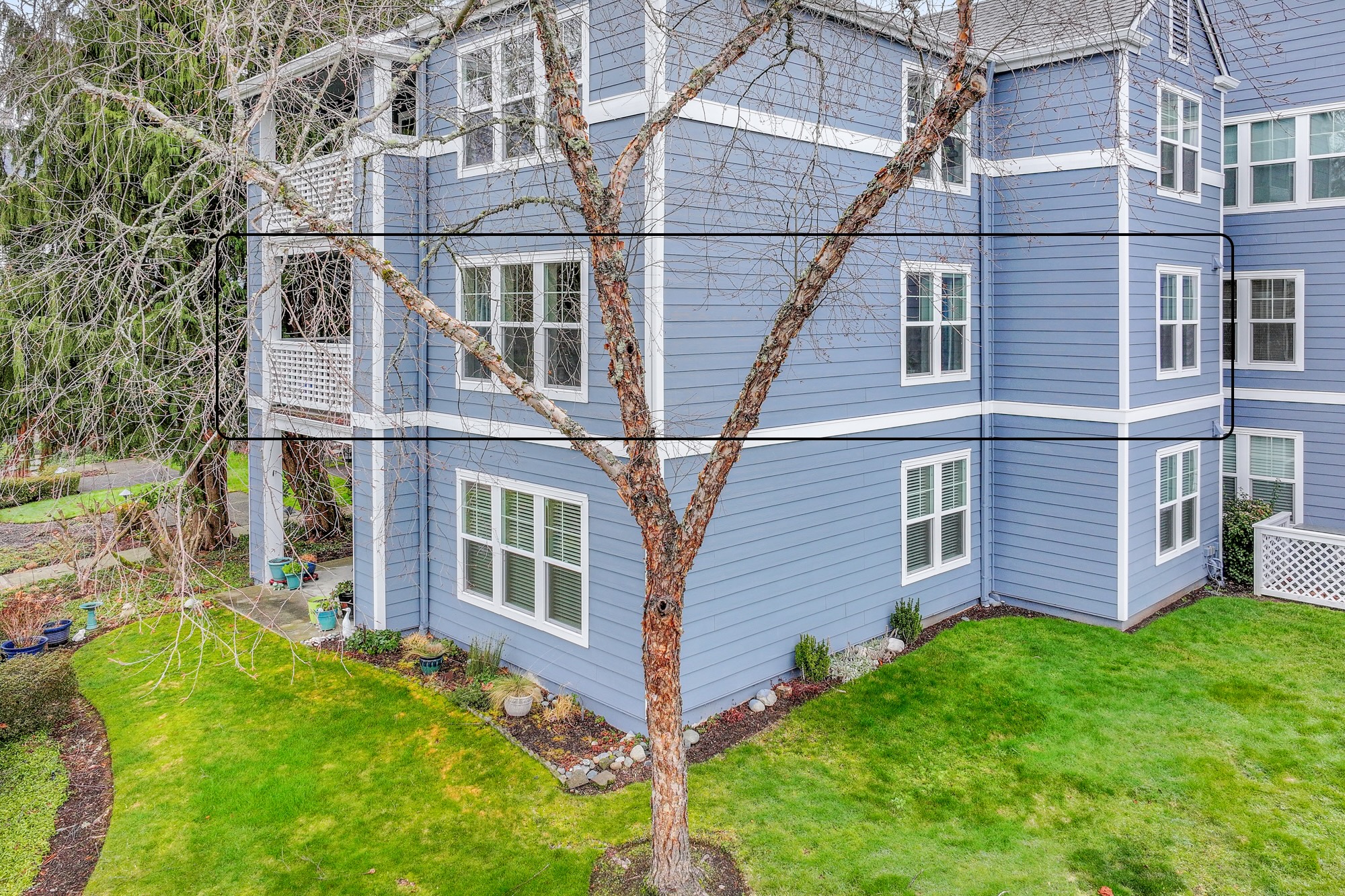 Enjoy morning coffee or unwind in the evenings on the private covered balcony overlooking the tranquil Pea Patch community garden space and towering evergreens. Step outside to beautifully landscaped walking paths, a well-manicured courtyard, and a vibrant community garden, perfect for those with a green thumb.