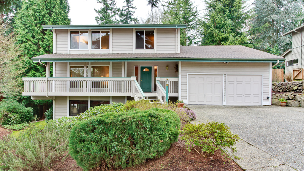 Nestled in a quiet cul-de-sac, sits this charming two story with daylight basement home. The gracious floorplan boasts 2900 s.f. and features 5 bedrooms, 2.75 baths with den & bonus on a private, south facing 12,097 s.f. lot which backs to a greenbelt! Recent updates include roof, carpet, vinyl windows and remodeled kitchen. Formal living & dining room with abundant windows and a slider to the deck. Updated kitchen and nook with breakfast bar, rich hardwood floors, stainless appliances and a wall of windows overlooking the deck & yard. The huge family room has a gas fireplace and slider opening to the large entertainment sized deck overlooking rear yard. Powder room on main. Wonderful master suite with “his & hers” closets & attached 3/4 bath. Three additional bedrooms & full bath upstairs. On the lower level you’ll find... the 5th bedroom, spacious den, half bath & huge bonus room which features a slider to the rear yard & provides plenty of room to relax or play! The large, south facing deck overlooks the private rear yard and greenbelt - excellent for entertaining, relaxing or soaking up the sun! Lush plantings, terraced deck & play area make for a wonderful setting! Attached two car garage & oversized driveway in front. Outstanding Lake Washington schools - Juanita Elementary, Finn Hill Jr High & Juanita High.