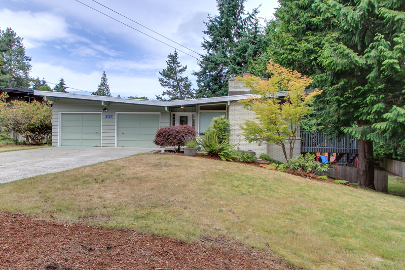Updated mid-century design home on Rose Hill in Kirkland. The spacious floorplan features 4 bedrooms plus a den, rec. room, 2.5 baths, 2,330 s.f. on a large 12,006 s.f. lot. The living room has vaulted ceilings, cozy fireplace and French doors leading to the deck. The dining room has a sunny skylight and hardwood floors. The updated kitchen has a sunny skylight and features hardwood floors, ample cabinets, granite counters, gas cooktop, stainless appliances and attached breakfast nook. The master has a large closet and sliding door to the deck. The attached bath has an updated vanity and tile shower. Two additional bedroom upstairs are spacious. The full bath in the hall has also been updated with tile accents. On the lower level you will find: Oversized family room with fireplace, wet bar area and sliding glass door to patio and yard. Private den with built-in cabinetry. The ensuite bedroom has a big closet, French doors to patio, attached 3/4 bath and an adjacent rec. room. The laundry room has room for storage and door to the rear yard. There is a large, entertainment sized covered deck off the kitchen - perfect for BBQing! The second deck is off the living room and master with access to the large side yard. The private, fully fenced yard has a fire pit, ample lawn area and a child’s playstructure. Outstanding Lake Washington schools - Rose Hill Elementary, Rose Hill Jr High & Lake Washington High. Easy access to Microsoft, freeways, shopping, Downtown Kirkland, Redmond and Bellevue!