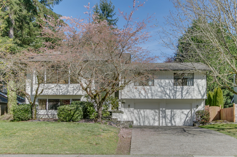 Across from the quiet park in Sunrise on English Hill, sits this spacious home. The open, “light-filled” floorplan boasts 2430 s.f. and features 4 bedrooms, 2.5 baths on a 7,539 s.f. lot! Many updates include white millwork and doors, crown molding, updated kitchen and bathrooms! Formal living room with vaulted ceiling, fireplace and slider to deck overlooking the rear yard. Adjacent to the living room - French doors open up to a private den with wet bar. Spacious, formal dining room between kitchen and living room - perfect for entertaining. Updated kitchen with hardwood floors, white cabinets, tile counters, pantry closets and a huge nook surrounded in windows. Generous master bedroom with “his & her’s” closets. The attached bath has been updated with heated tile floors, new maple cabinet, granite counter and tile shower. Two additional bedrooms upstairs are very spacious and you'll find a updated full bath in the hall too! On the lower level: The 4th bedroom is oversized - with a large window overlooking the front gardens. The huge family room has new carpet and is appointed with a fireplace, built-in desk & entertainment center with surround sound, and a slider to the rear yard. You will also find an updated 3/4 bath with laundry adjacent. Sunny, usable yard with room to relax, garden or play! Attached 2 car garage with ample storage options. Outstanding Northshore schools - Sunrise Elementary, Timbercrest Jr High & Woodinville High. Easy access to the area’s High Tech employers.