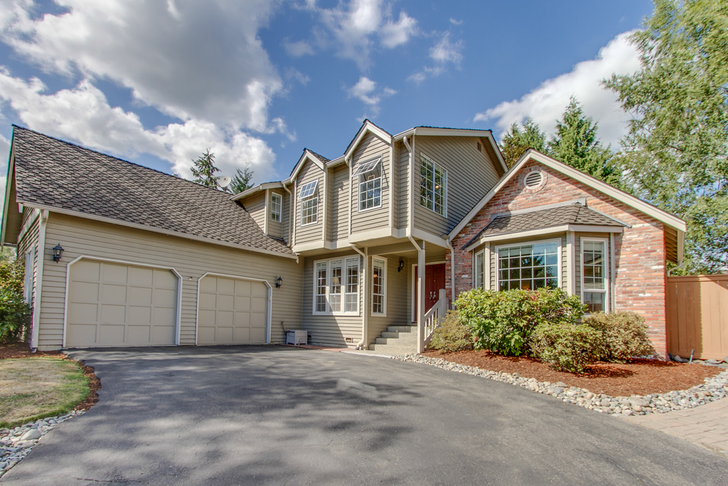 High quality remodeled home in Olde Morrison Place on English Hill. The well laid out floorplan boasts 2,400 s.f. and features 3 bedrooms, 2.25 baths on a private lot! Many recent updates include - remodeled kitchen and baths, newer carpets, white molding and doors! Sunken formal living room with bay windows and vaulted ceiling. Formal dining room with coffered ceiling, wood floors and ample windows. Totally updated kitchen with skylights, pantry, attached nook and features cherry cabinets, slab granite counters & stainless appliances included! Relaxing family room with gas fireplace, built-in surround sound and French doors to deck. Remodeled powder room with granite counter and upgraded fixtures. Private main floor office area. Huge master suite with walk-in-closet. The master bath has been totally remodeled with tile floors, double vanity with corian counters, and luxurious oversized tile shower. Two additional bedrooms upstairs are very spacious. The large, full bath in the hall has been updated with new fixtures, flooring, tub and tile surround. Oversized laundry room with storage - washer & dryer included! Big, entertainment sized Trex deck and stamped concrete patio are great for relaxing or soaking up the sun! Fully fenced yard, Tuff shed, lawn for play and ample garden beds too. Attached two car garage with storage loft and attic storage. Outstanding Northshore schools - Sunrise Elementary, Timbercrest Jr High & Woodinville High.