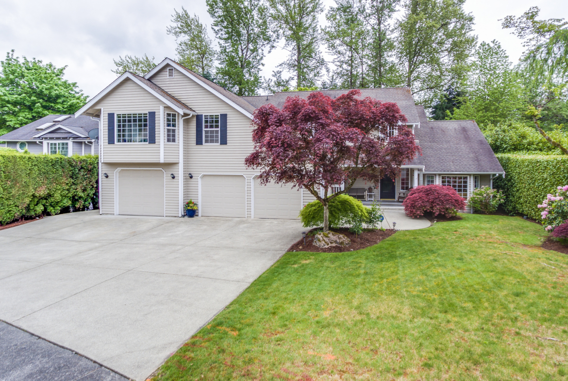 Big, entertainment sized deck and patio overlooks the private, fully fenced rear yard with water feature and storage shed. Nice lawn provides room for play or soaking up the sun! Outstanding Northshore schools - Sunrise Elementary, Timbercrest Jr High & Woodinville High.
