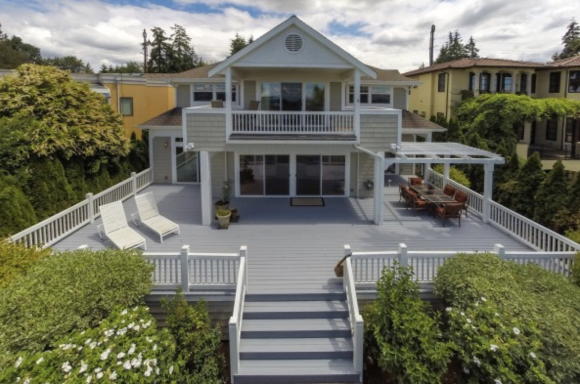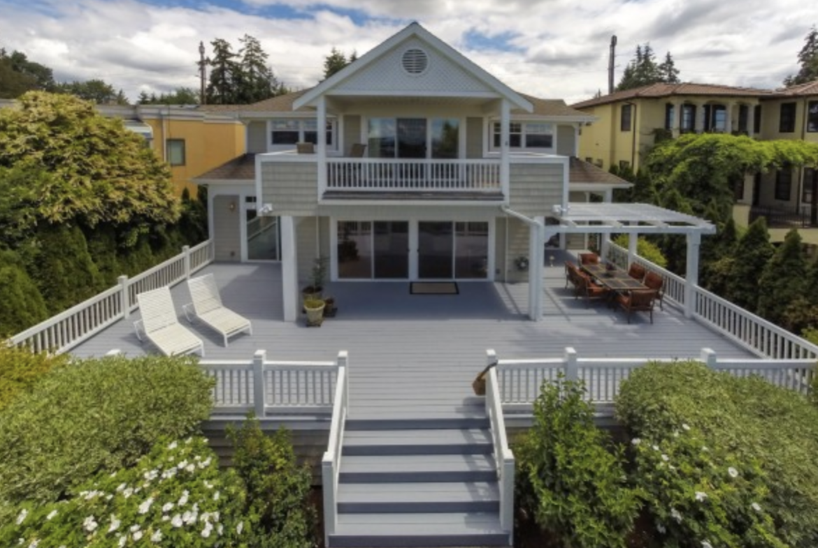 Three separate sitting areas to relax in. Elegant double sided fireplace wrapped in granite. Custom lyptus mantel on fireplace near to kitchen. All these wonderful spaces open to the rear deck & yard with views of the Olympics, Lake Washington & Seattle’s Skyline! You can even enjoy several fireworks shows on the 4th of July!